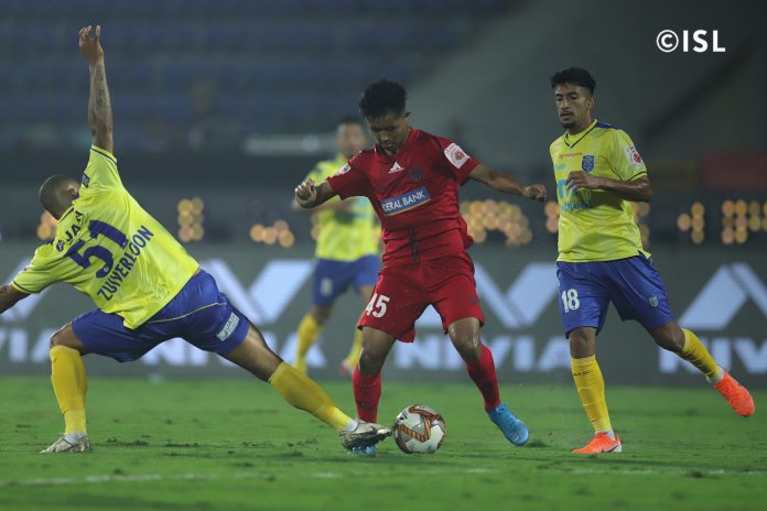 ഇന്ത്യൻ സൂപ്പർ ലീഗിൽ കേരള ബ്ലാസ്റ്റേഴ്സ്- നോർത്ത് ഈസ്റ്റ് യുണൈറ്റഡ് പോരാട്ടം ആദ്യ പകുതി പിന്നിട്ടപ്പോൾ ഗോൾ രഹിതം. കഴിഞ്ഞ കളിയിൽ കളിമറന്ന രെഹ്നേഷിന് പകരം ബിലാൽ ഖാനാണ് ഇന്ന് ഗോൾ വലകാത്തത്. ഇന്ന് ഇന്ദിരാഗാന്ധി സ്റ്റേഡിയത്തിൽ തുടക്കം മുതൽ തന്നെ ഗോളടികാനായിരുന്നു ഇരു ടീമുകളുടെ ശ്രമവും.