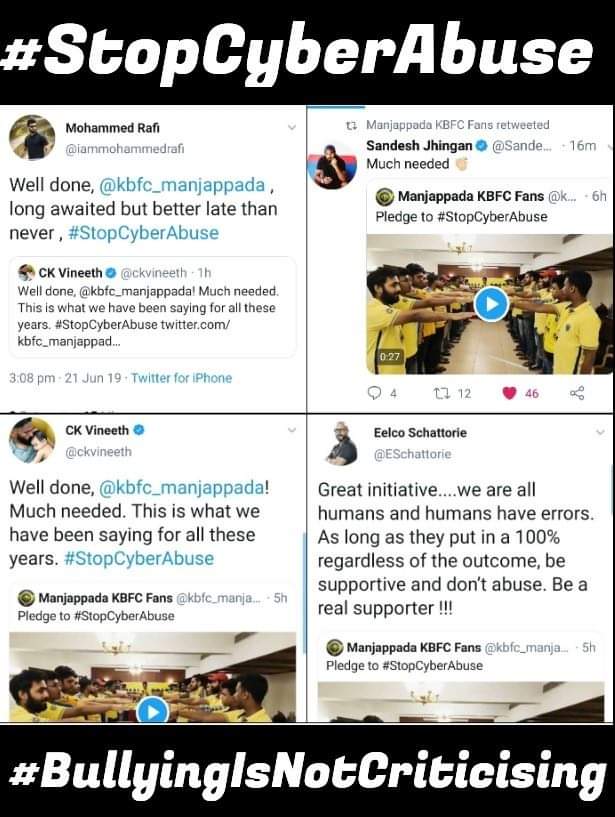 മഞ്ഞപ്പടയുടെ ഗ്ലോബൽ മീറ്റിലാണ് ഇങ്ങനെ ഒരു തീരുമാനം ഉണ്ടായിരിക്കുന്നത്. കളിക്കാർക്കും കോച്ചിംഗ് സ്റ്റാഫുകൾക്കും സോഷ്യൽ മീഡിയയിൽ നേരിടേണ്ടി വരുന്ന ആക്രമണങ്ങൾക്ക് എതിരെ പ്രവർത്തിക്കാനും ഇതിനായി #StopCyberAbuse – എന്ന ക്യാമ്പയിൻ തുടങ്ങുന്നതിനുമാണ് മഞ്ഞപ്പട ഗ്ലോബൽ മീറ്റിൽ തീരുമാനിച്ചത്. വിമര്ശനം ആണ് മഞ്ഞപ്പടയുടെ ആരാധകർ നടത്തണ്ടതെന്നും അല്ലാതെ അധിക്ഷേപം അല്ലെന്നും മഞ്ഞപ്പട പറഞ്ഞു. ക്ലബ്ബ് ആരാധകരുടെ ഈ നടപടി ഇരു കയ്യും നീട്ടി ഏറ്റുവാങ്ങിയീരിക്കുകയാണ് ഫുട്ബോൾ ലോകം