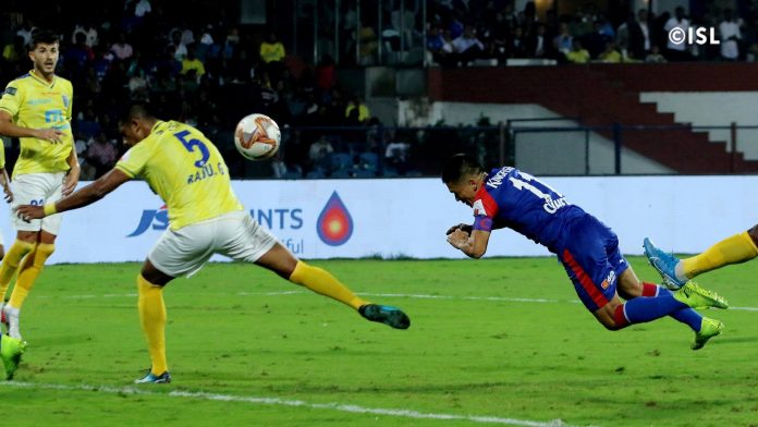 കേരള ബ്ലാസ്റ്റേഴ്സ് പ്രതിരോധത്തെ നോക്കുകുത്തിയാക്കിയാണ് ഛേത്രി ഗോളടിച്ചത്. ആദ്യ പകുതിയിൽ പിടിച്ചു നിന്ന ബ്ലാസ്റ്റേഴ്സ് പ്രതിരോധം തകർന്നടിയുന്ന കാഴ്ച്ചയാണ് രണ്ടാം പകുതിയിൽ കണ്ടത്. ഇപ്പോൾ അഞ്ചു മത്സരങ്ങളിൽ നിന്ന് 4 പോയന്റുമായി ഏഴാം സ്ഥാനത്താണ് കേരള ബ്ലാസ്റ്റേഴ്സ് ഉള്ളത്.