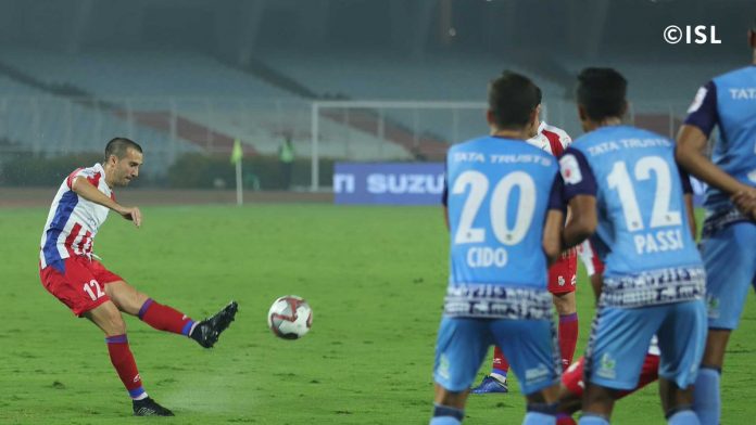 ഇന്ത്യൻ സൂപ്പർ ലീഗിൽ സംഹാരതാണ്ഡവുമായി എടികെ. ആദ്യ പകുതി അവസാനിക്കുമ്പോൾ എതിരില്ലാത്ത രണ്ടു ഗോളുകൾക്ക് മുന്നിലാണ് എടികെ. മാനുവൽ ലാന്സറോട്ടയുടെ ഇരട്ട ഗോളുകൾ ജെംഷെഡ്പൂരിന്റെ നടുവൊടിച്ചു. നാലാം മിനുട്ടിൽ തകർപ്പൻ ഫ്രീകിക്കിലൂടെ ലാന്സറോട്ട ആദ്യ ഗോൾ നേടി.