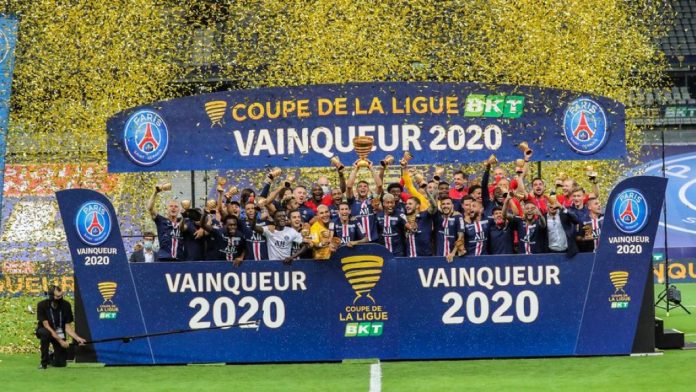 ഈ സീസണിലെ മൂന്നാം കിരീടമാണ് പിഎസ്ജി ഉയർത്തിയത്. ലീഗ് വണ്ണിനും ഫ്രഞ്ച് കപ്പിനും പിന്നാലെ ഫ്രഞ്ച് ലീഗ് കപ്പും പിഎസ്ജി സ്വന്തം പേരിലാക്കി. ലിയോണിനെ പെനാല്റ്റി ഷൂട്ടൗട്ടില് തോല്പ്പിച്ചാണ് പിഎസ്ജി ഫ്രഞ്ച് ലീഗ് കപ്പ് കിരീടം ഉയർത്തിയത്. നിശ്ചിത സമയത്തിന് ശേഷം പെനാല്റ്റി ഷൂട്ടൗട്ടില് 6-5നായിരുന്നു പിഎസ്ജിയുടെ കിരീടനേട്ടം. സൂപ്പർ താരം എംബപ്പെ ഇല്ലാതെയാണെങ്കിലും താര നിബിഡമായിരുന്നു ഇന്നത്തെ പിഎസ്ജി സംഘം.