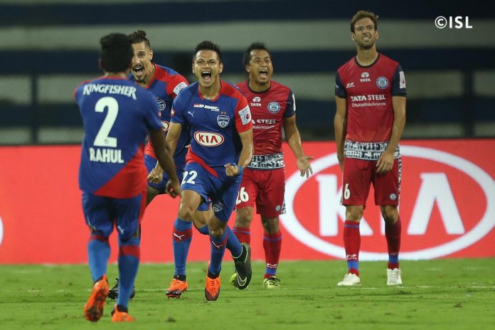 ഈ സീസണിലെ ഐ.എസ്.എല്ലിലെ ഏറ്റവും മികച്ച ത്രില്ലർ കണ്ട മത്സരത്തിൽ ബെംഗളൂരു എഫ്.സിയെ സമനിലയിൽ പിടിച്ച് കെട്ടി ജാംഷഡ്പൂർ. അവസാന 10 മിനുട്ടിൽ മൂന്ന് ഗോളുകൾ പിറന്ന മത്സരത്തിൽ ഇഞ്ചുറി ടൈമിലെ ഗോളിൽ ബെംഗളൂരു എഫ് സിയെ ജാംഷഡ്പൂർ എഫ്.സി 2-2ന് സമനിലയിൽ പിടിക്കുകയായിരുന്നു.